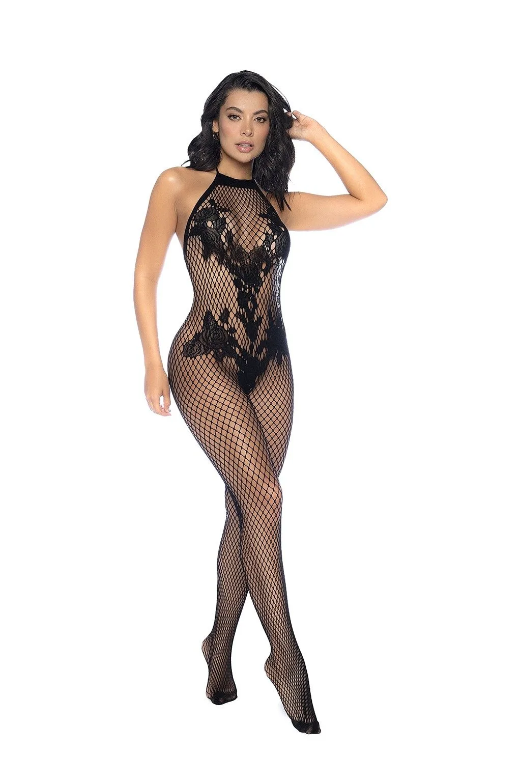 Bodystocking floral negro OS completo, que se adapta a tus curvas como ningún otro, con detalles florales estratégicamente ubicados en la parte delantera y un sensual diseño de espalda baja.